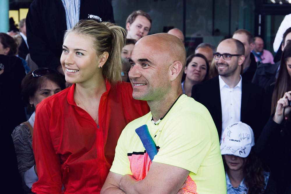 Tennis superstar Maria Sharapova (right) and Andre Agassi