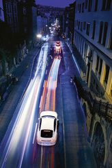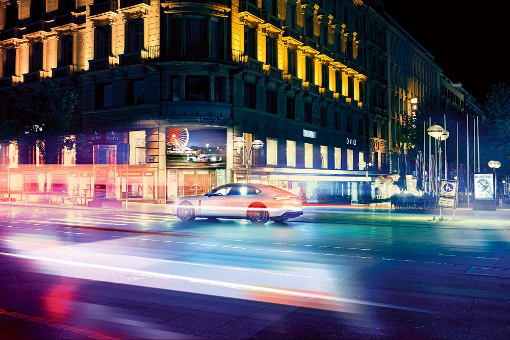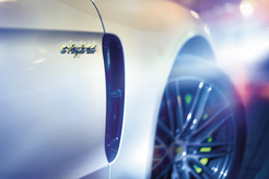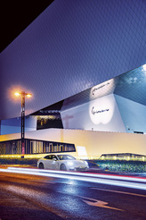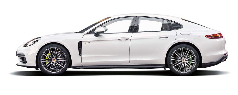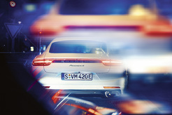 Panamera 4 E-Hybrid in front of the Porsche Museum