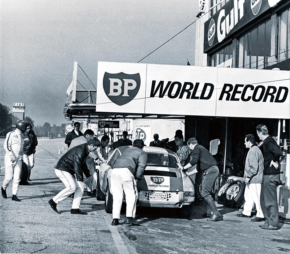 The Porsche 911 R at the record drive in 1967, Autodromo Nazionale di Monza