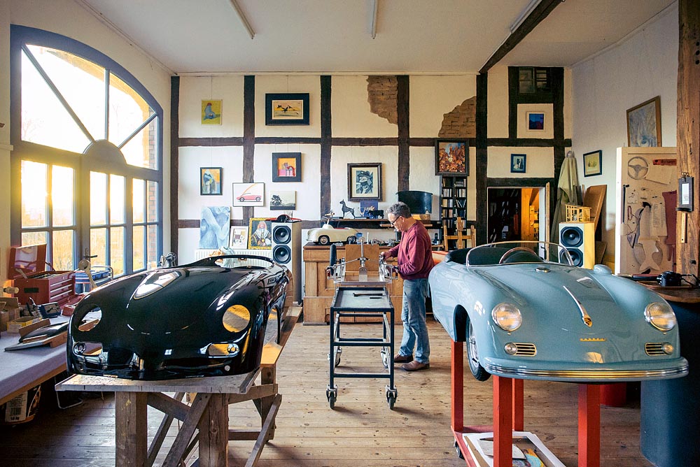 Miniature vehicles Porsche 356 Speedster and Porsche 550 Spyder