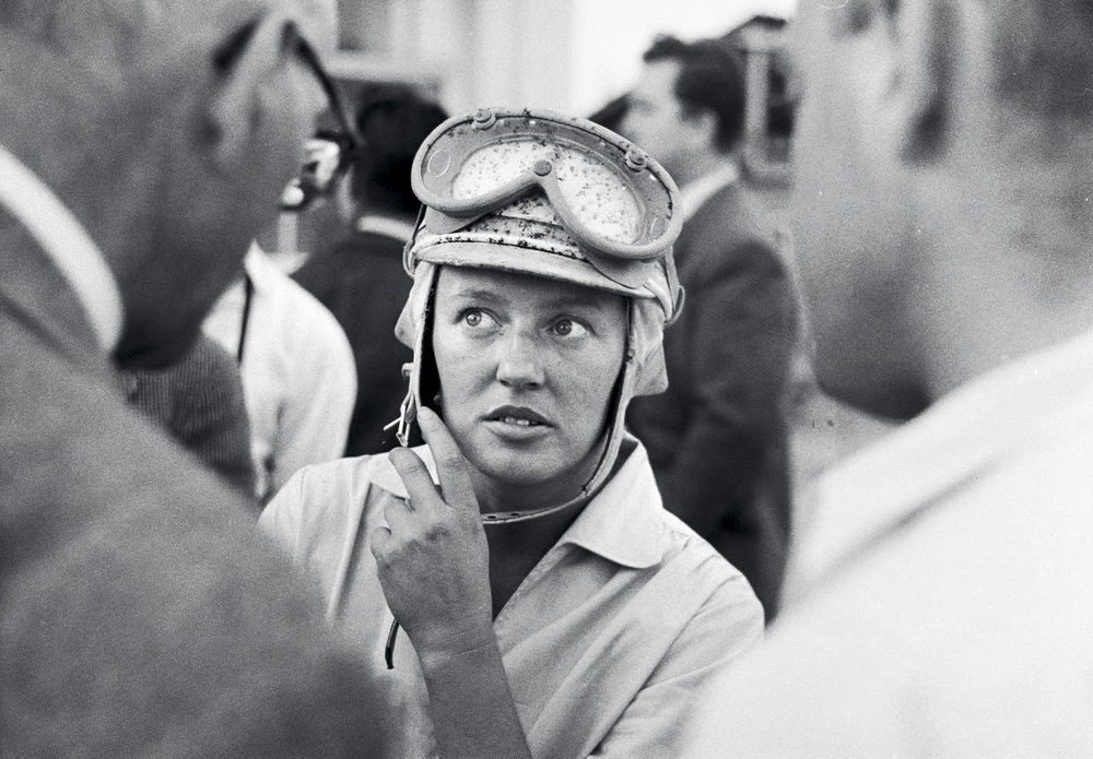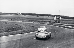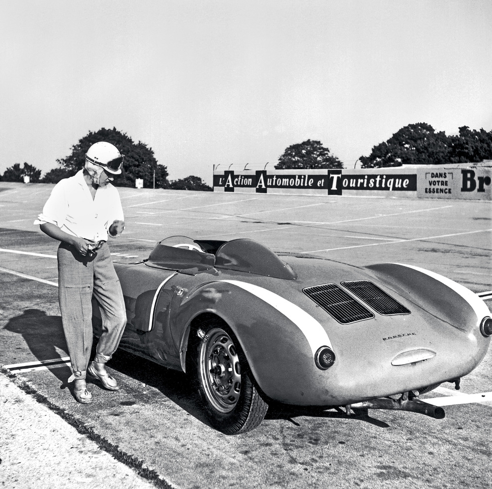 Annie Bousquet in Linas-Montlhéry with her Porsche 550 Spyder, 1956