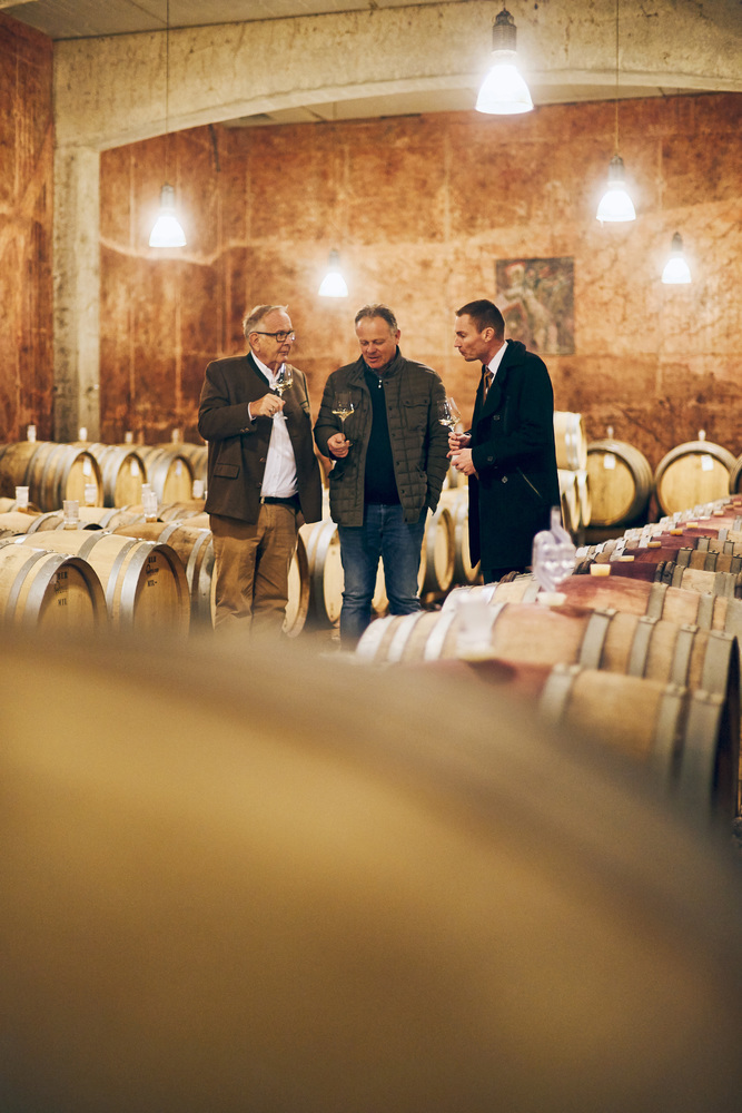 from l.: Wine importer Alexander Baron von Essen, vintner Manfred Tement and Holger Schramm, sommelier of Christophorus Restaurant