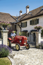 Karl-Friedrich Scheufele on his Porsche tractor