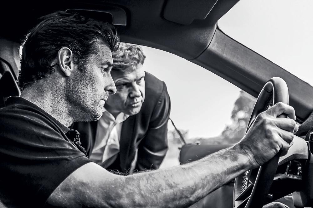 Mark Webber in the Taycan next to Stefan Weckbach