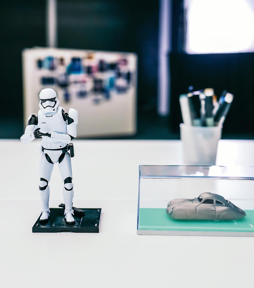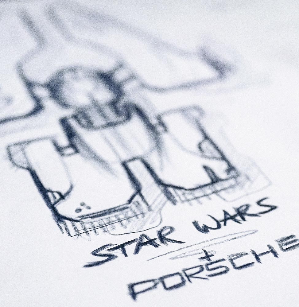 Michael Mauer, Vice President Style Porsche, with employees of Lucasfilm Ltd.