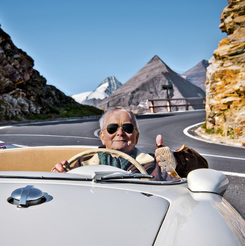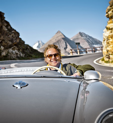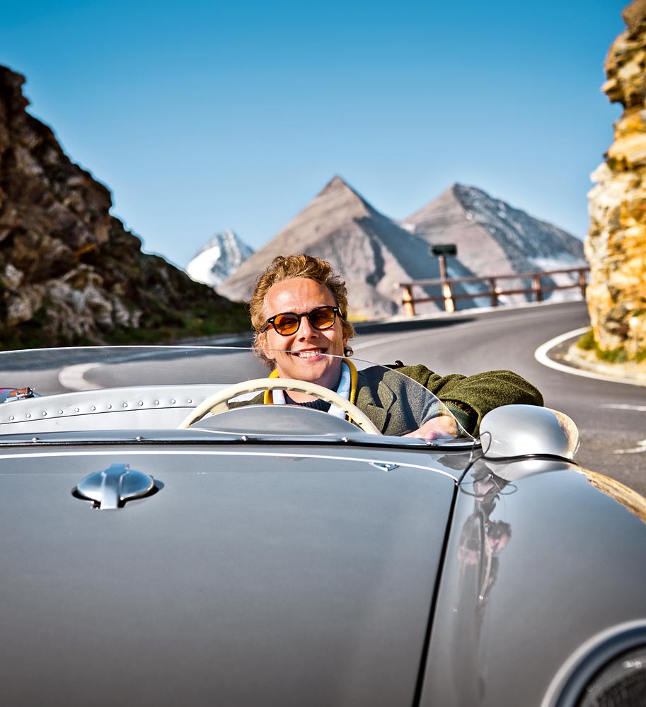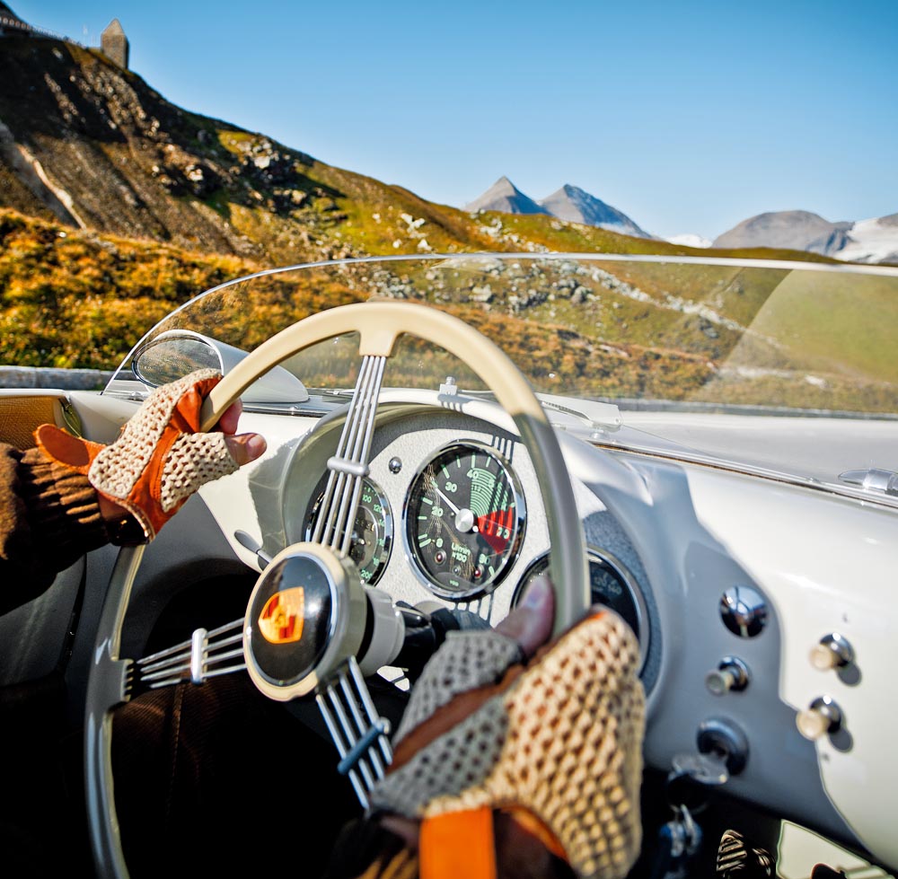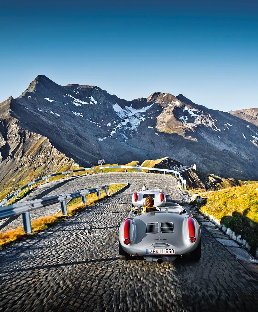 Dr. Wolfgang Porsche in a Porsche 550 Spyder on the Großglockner High Alpine Road