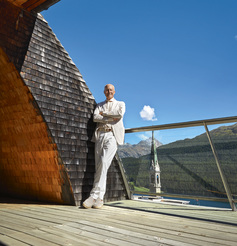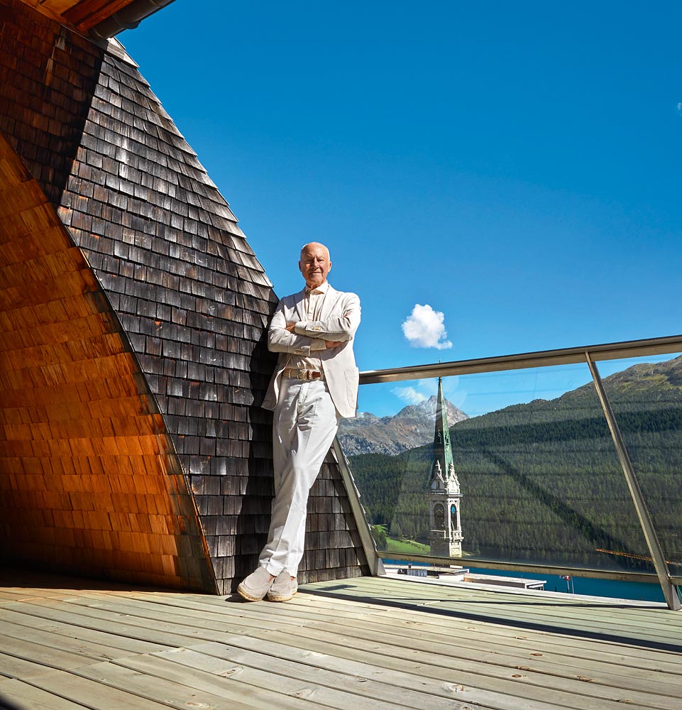 Lord Norman Foster in the Porsche 356 at his “house of the future” in St. Moritz