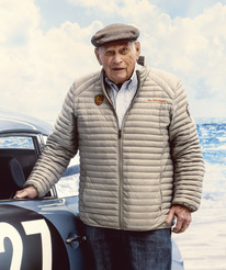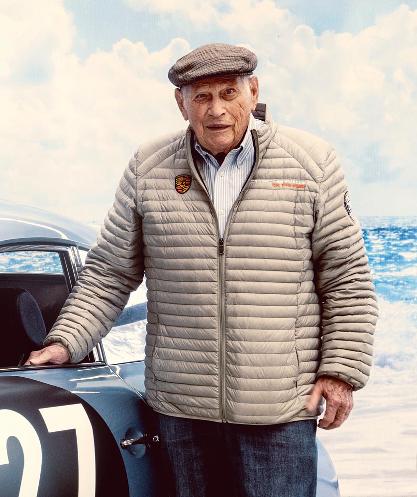 Motorsport legend Herbert Linge next to the Porsche 356 A 1600 GS Carrera GT