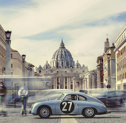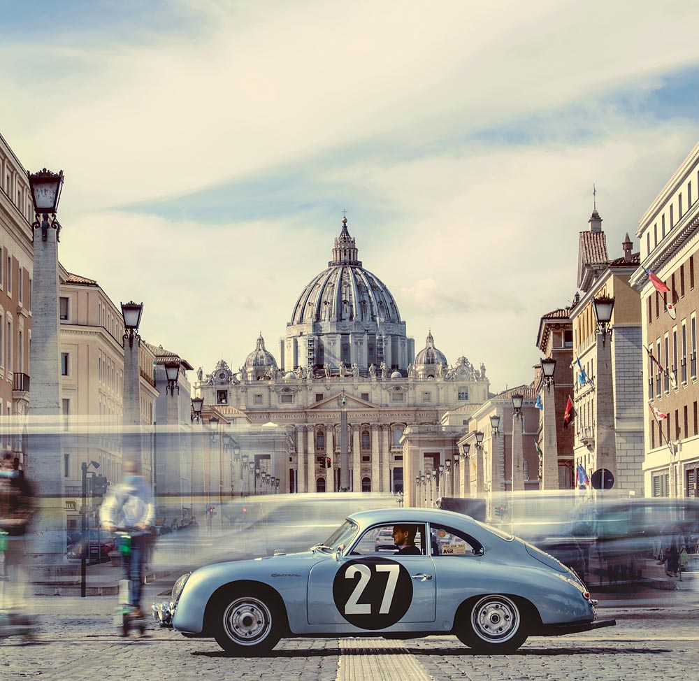 Marc Lieb and the Porsche 356 A 1600 GS Carrera GT in front of the Vatican City