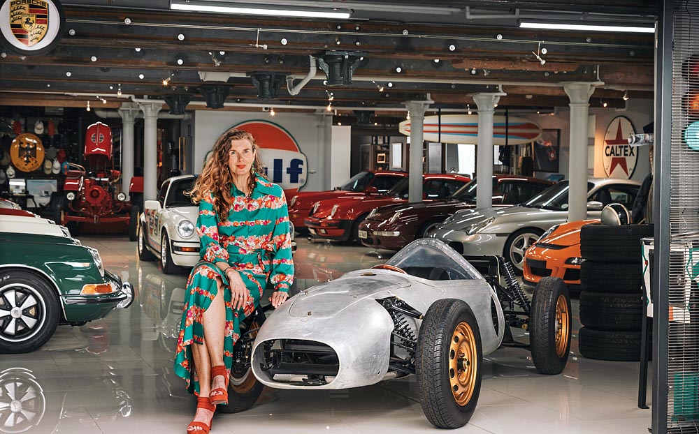 Michelle Hambly-Grobler with Bill Jennings's Formula 1 racing car