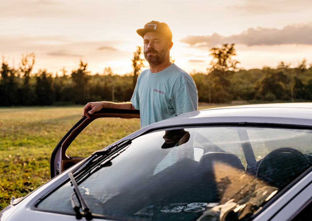 Justin Roeser next to his Porsche 928