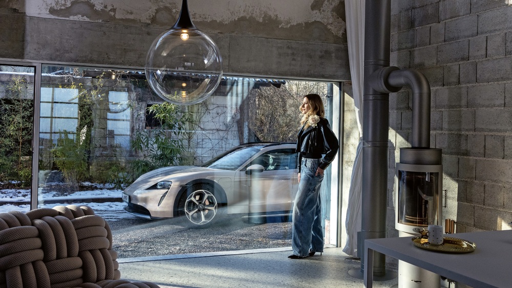 Product designer Nika Zupanc with her Porsche Taycan 4 Cross Turismo in Ljubljana, Slovenia