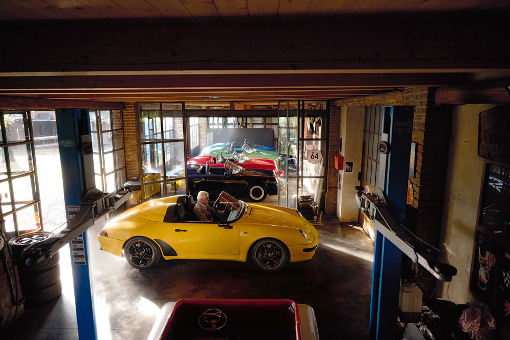 Luca Trazzi with his Porsche 911 Speedster (993) in his garage in Spirago, Italy