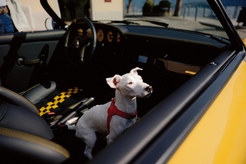 Luca Trazzi's dog Otto in the Porsche 911 Speedster (993)