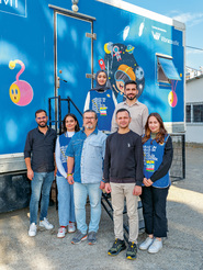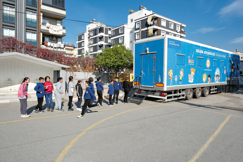Children at a mobile learning center (firefly) co-financed by Porsche in Hatay, Turkey