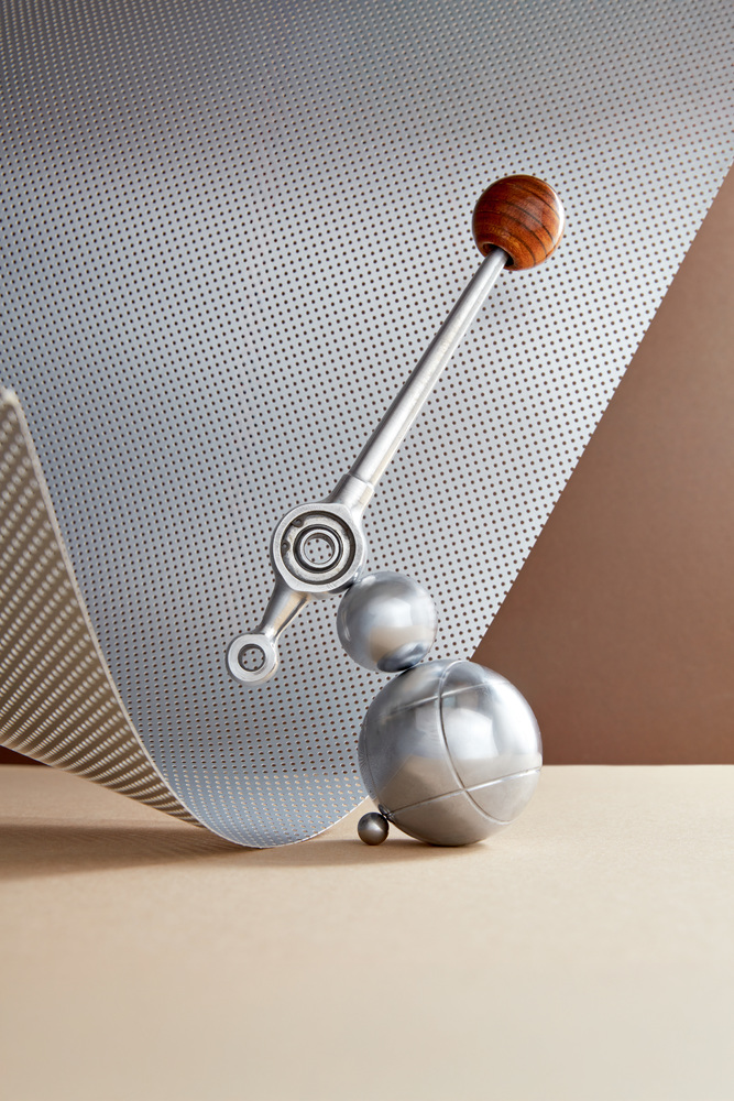 Gear shifter of the Porsche 908/03 Spyder with a gear knob made from mahogany