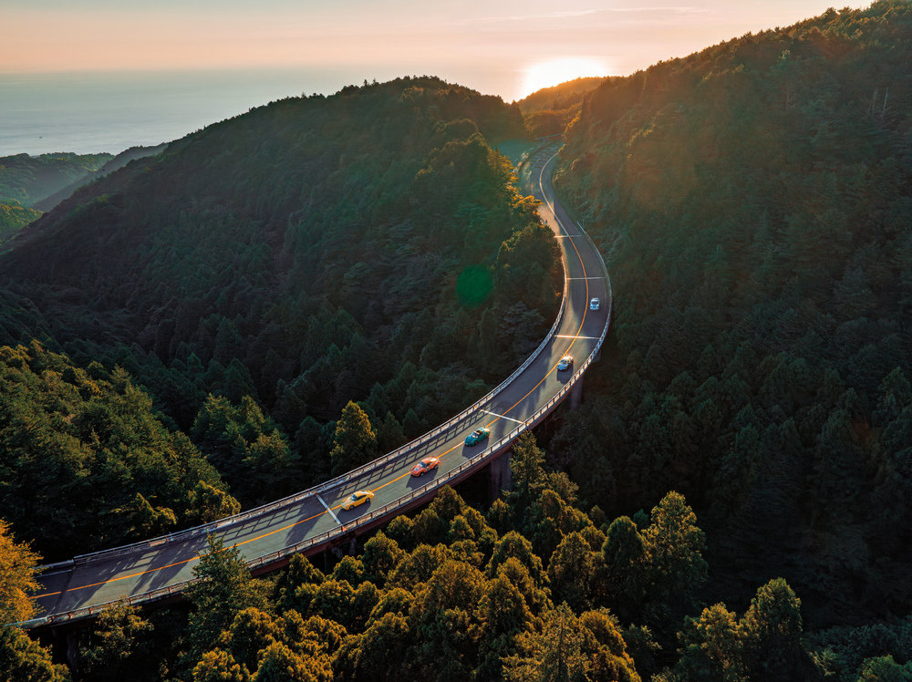 Early Morning Hakone Runners in the mountainous region of Hakone, Japan