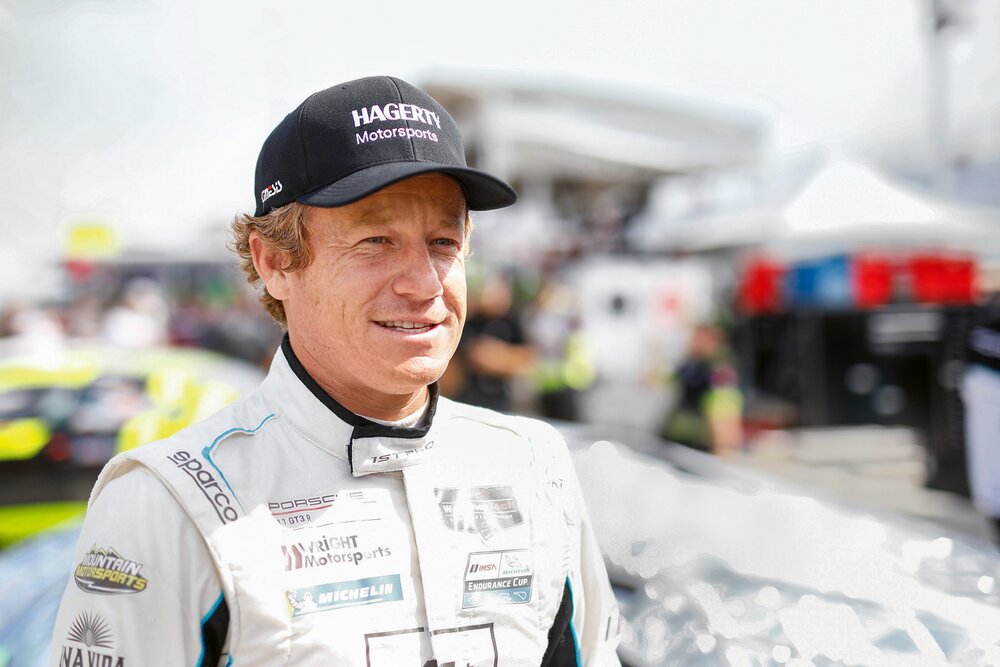Racing professional Patrick Long on the set of the film F1 The Movie