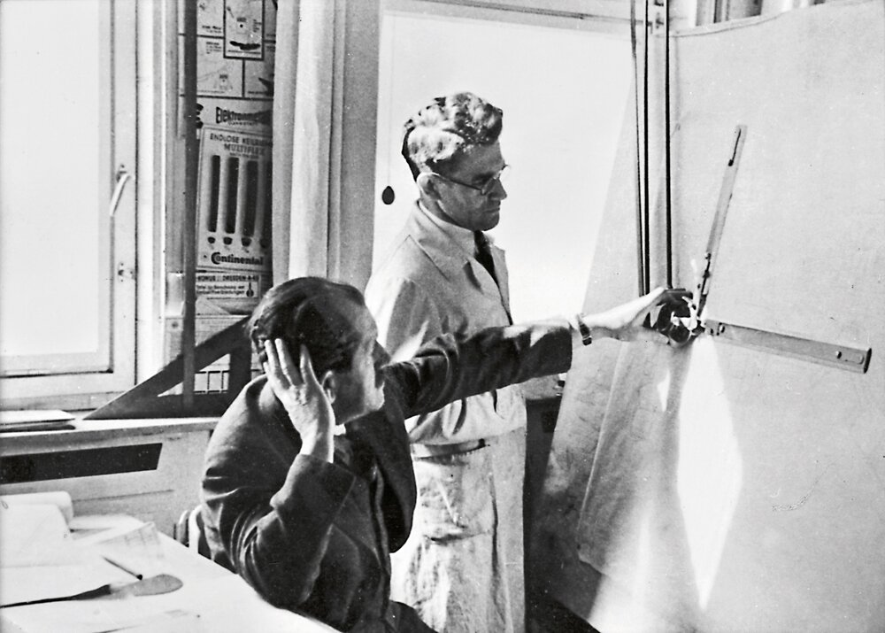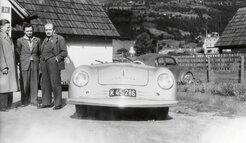 Ferdinand Porsche in 1948 with his son Ferry and body designer Erwin Komenda (below, from right to left) alongside the first Porsche car ever built, the 356 “No. 1” Roadster