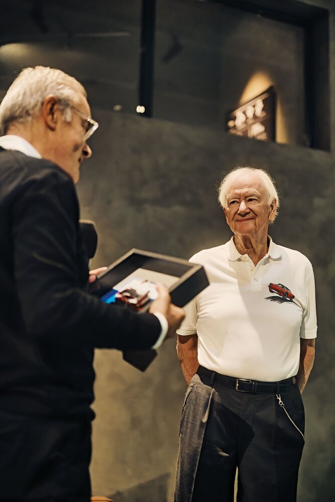 Andrea Gruppach, President of the Italian Porsche Club association, and Hans-Peter Porsche, founder of Traumwerks