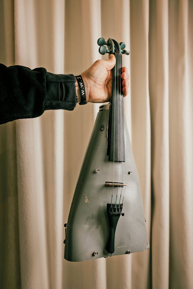 Violin made from rocket debris at the Creative Hub in Kyiv
